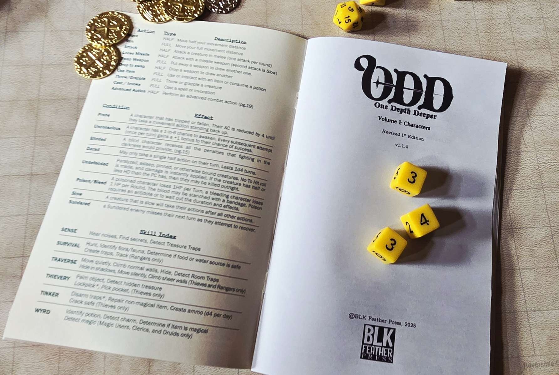 Inspired by the original dungeons and dragons, BX, and AD&D; ODD is a game with a simple but deadly design. Take up the mantle as a Fighting Man, a Magic User, a Thief, or a Cleric and delve into the dungeon to steal coins and seek adventure!